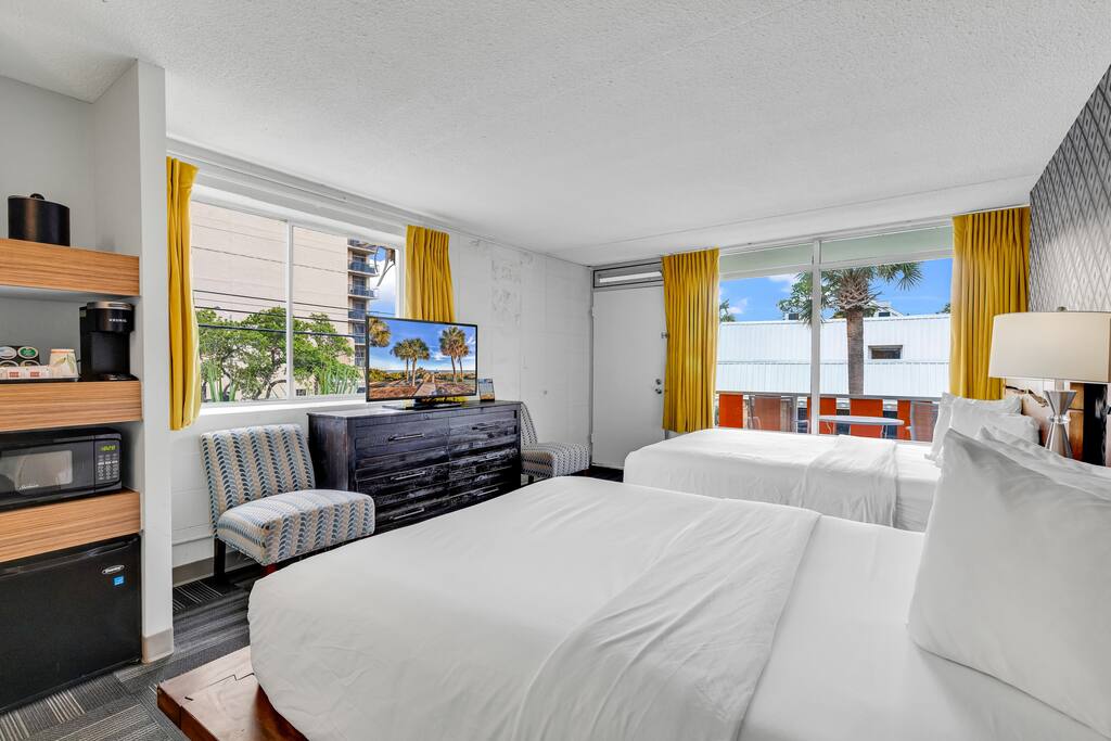 Rilassati in questo appartamento sull'oceano recentemente ristrutturato al Beach Colony Resort. Caratterizzato da arredi e finiture moderni, l'appartamento include un comodo letto king-size e un divano letto queen-size, una graziosa cucina e un ampio bagno. Il resort offre qualcosa per tutti, con servizi come piscine interne ed esterne riscaldate, vasche idromassaggio, fiume lento, tiki bar, ristorante, caffetteria, racquetball, centro fitness, sauna, sala giochi e prati paesaggistici con amache e alianti. La tua vacanza perfetta sulla spiaggia ti aspetta!