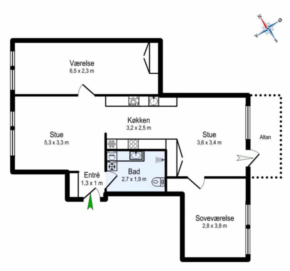Appartamento di lusso sull'isola di Aarhus con vista unica sul porto, sul porto di Aarhus e sul centro di Aarhus - una vista che è bella tutto l'anno e tutto il giorno. L'appartamento di 47 m2 si trova al 3° piano (ultimo piano) e dispone di cucina-soggiorno, bagno e camera da letto. Inoltre, dispone di un ampio balcone coperto esposto a sud, dove è possibile seguire le attività del porto.