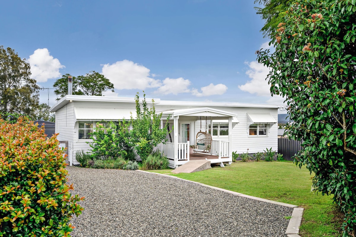 Splendida vista sulle montagne e posizione elevata su Convent Hill. Affascinante casa con 2 camere da letto, vicino a tutto ciò che Cessnock e la Hunter Valley hanno da offrire. A pochi passi da negozi, caffetterie/ristoranti, club e pub. Relax on Regent si trova a breve distanza in auto dalle cantine, dai giardini e dalle sale da concerto della Hunter Valley! Al ritorno da una giornata di esplorazione, goditi un drink sul portico anteriore e ammira il tramonto sulla Brokenback Range. Ideale per 4 persone. Gli animali domestici ben educati sono i benvenuti, previa approvazione.