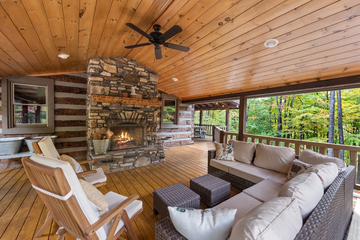 La Serenity Cabin offre una cabina di 1100 piedi quadrati su 70 acri. 1 camera da letto principale e divano letto. La migliore vasca da bagno in rame e la vista migliore in circolazione! Ponte esterno su entrambi i livelli. TV "progettate da esperti". WiFi Ingresso con cancello, lungo vialetto appartato e privato. Vista a 360° sulla montagna. Cammina, fai escursioni, porta i tuoi cani. Accesso all'intera proprietà. Spuntini 🦙 🐖 🐐 🐓 dalla nostra mini fattoria qui accanto. Siamo amici dei cani e offriamo agli ospiti un accesso privato al fiume Watuaga a mezzo miglio lungo la strada