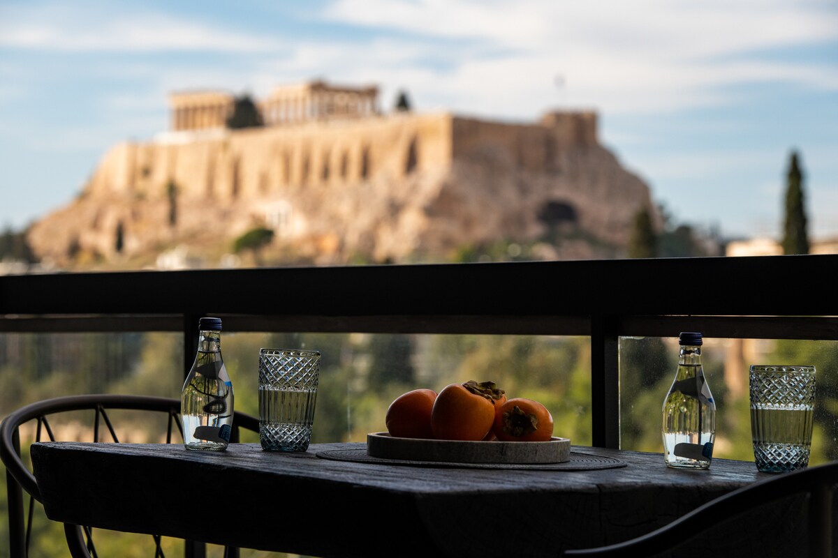 Accogliente e nuovissimo appartamento con vista sulla collina dell'Acropoli e sul Partenone dal balcone privato. Si trova vicino al museo dell'Acropoli, all'ingresso del Partenone e alla stazione della metropolitana Acropoli. In pieno centro storico, ai piedi della collina dell'Acropoli e vicino al famoso quartiere di Plaka, è il luogo ideale per chiunque visiti Atene.