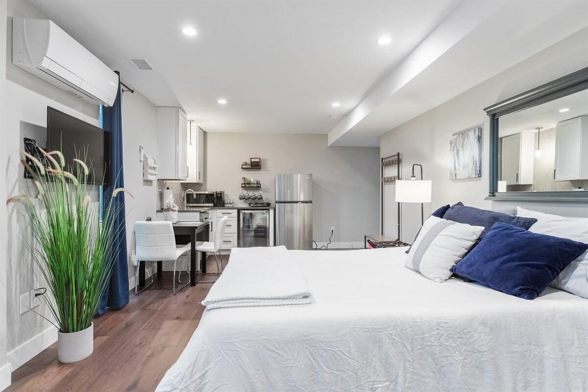 Quiet top-floor LoHi studio condo with private entrance. Steps to cafés, breweries, and shops with quick access to Union Station, RiNo, and downtown. Catch the Nuggets or Avalanche at Ball Arena, Broncos at Mile High, or Rockies at Coors Field, all just minutes away. Explore Meow Wolf Denver or head to Red Rocks. Unlike condotels or apartments, this retreat has no shared hallways or lobbies. Enjoy peace, privacy, a full kitchen, workspace, and modern bath, perfect for business or leisure.
