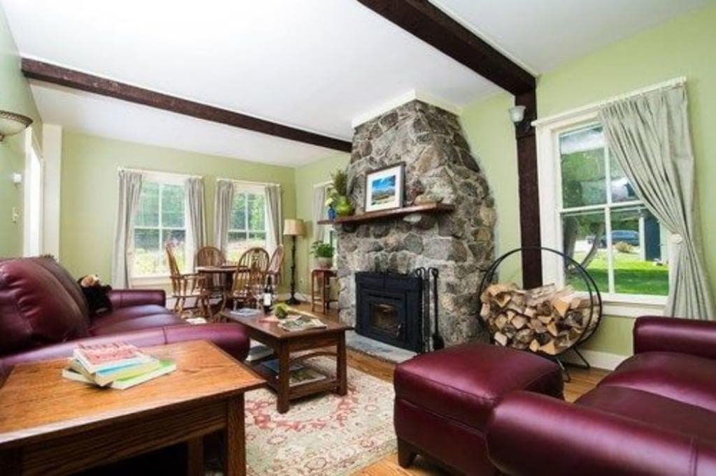 Questa splendida casa del Vermont si trova su 10 ettari di terreno con una vista spettacolare. Abbiamo spostato questa struttura in legno su questo terreno e abbiamo chiesto a un architetto di adattarla all'ambiente circostante. Ha tre pareti di finestre che offrono una vista mozzafiato. La casa è circondata dai sentieri escursionistici del Monte Anthony e da uno splendido laghetto. La posizione dista 5 minuti in auto dalla città o 20 minuti a piedi.