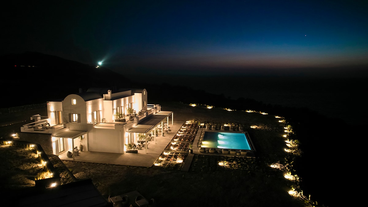 La villa Ambeli si trova nella regione di Megalochori e offre una superficie abitabile totale di 530 m². Questo edificio antisismico di nuova costruzione, che rispetta tutte le linee guida ufficiali per massimizzare la sicurezza degli ospiti, offre quattro graziose camere da letto e 4 bagni, e può ospitare fino a 9 persone. La piscina e la vasca idromassaggio all'aperto riscaldata ti offriranno un senso di relax e benessere. La "colazione fatta in casa" e il servizio di pulizia giornaliero sono inclusi nel prezzo
