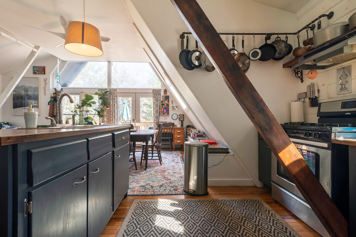 Glamping in una A-frame a pochi passi dal torrente. Nuota, pesca e gioca sui monti Catskill. Glamping sul torrente Charlotte Creek in una moderna casetta di nuova costruzione con tetto spiovente. Dormi sotto la luna piena. Di notte, un gigantesco chiaro di luna si riflette sulla finestra sopra il letto, con una vista mozzafiato sul torrente. Perfetto per una fuga romantica, una battuta di pesca o un glamping sui Catskill. Vicino a Cooperstown, Stato di New York IG @aframe_moon