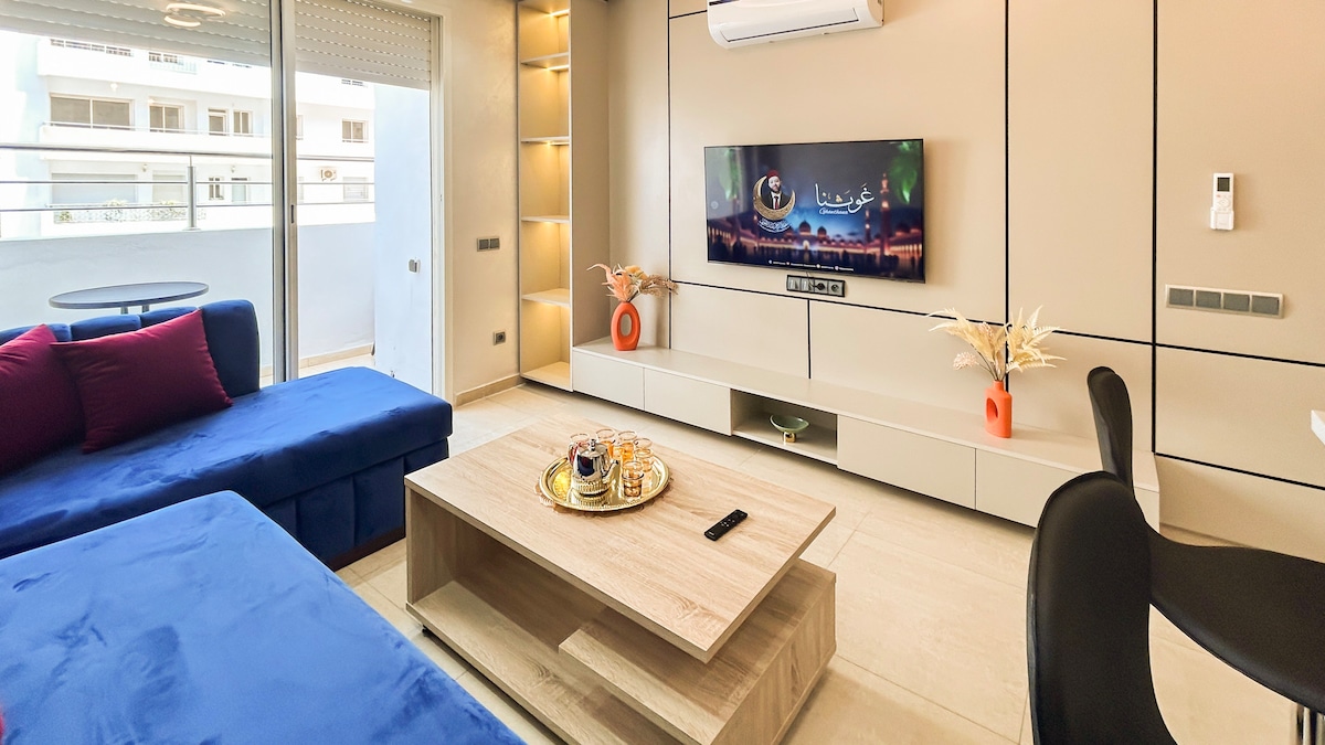 Situato nel cuore di Haut Founty, una delle migliori posizioni di Agadir, questo nuovo appartamento unisce eleganza e comfort. A pochi passi dalla spiaggia, da Agadir Bay, dai centri commerciali Carrefour/Marjane e dal famoso Souk El Had. Con la sua moderna cucina blu notte, il suo accogliente soggiorno e la sua camera da letto rilassante, ogni spazio è stato pensato per il tuo benessere. Immerso nella luce e in un'atmosfera tranquilla, è il luogo perfetto per rilassarsi, lavorare o godersi Agadir in tutta serenità.