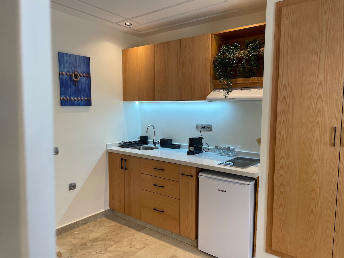 🌟 Studio ElyCity – Pratico e luminoso nel cuore dell'Agdal Situato al piano terra di un residence, il monolocale ElyCity offre un ambiente moderno, accogliente e perfettamente attrezzato per un piacevole soggiorno a Rabat. Goditi una posizione di prima scelta: •A 5 minuti a piedi dalla stazione di Agdal e dal tram •Sulla vivace via Fal Ould Ouleir, con i suoi numerosi ristoranti, bar e caffè • A due passi dai quartieri amministrativi, nonché da tutti i servizi essenziali.