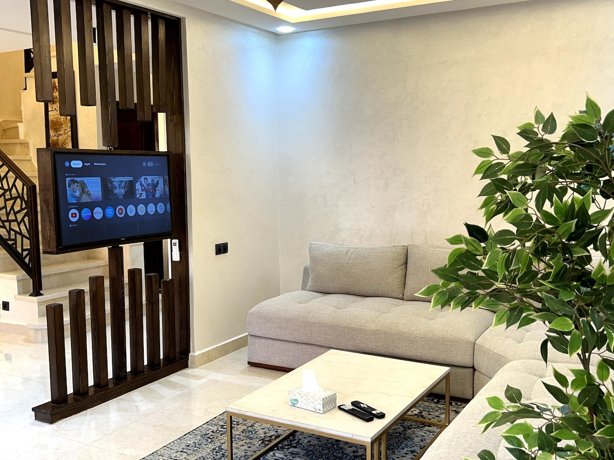 PS: non sono accettate coppie marocchine non sposate. Un alloggio chic e di design nel cuore del quartiere di lusso di Rabat. Questo appartamento è composto da 3 splendide camere da letto e 2 bagni. Il nostro obiettivo è di offrirvi un soggiorno indimenticabile con il massimo comfort e in un'atmosfera puramente familiare.