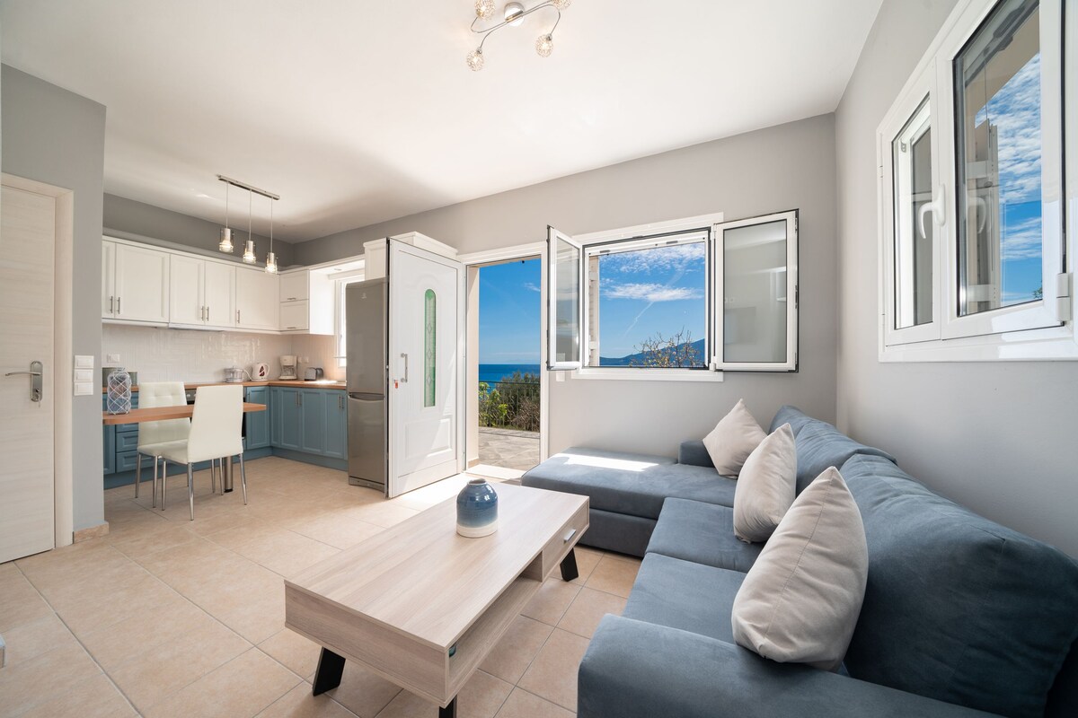 Nuovo moderno appartamento di 55 s.m. con splendida vista,adatto alle famiglie e alle spiagge facilmente raggiungibili a piedi a pochi metri. Verande,ristoranti,bar-bar e supermercato a soli 100 metri di distanza. Inoltre, le famose spiagge di Antisamos e Myrtos distano solo 20 minuti in auto. L'appartamento dispone di 2 A/C, 2 televisori con canali satellitari,lavatrice e wifi.