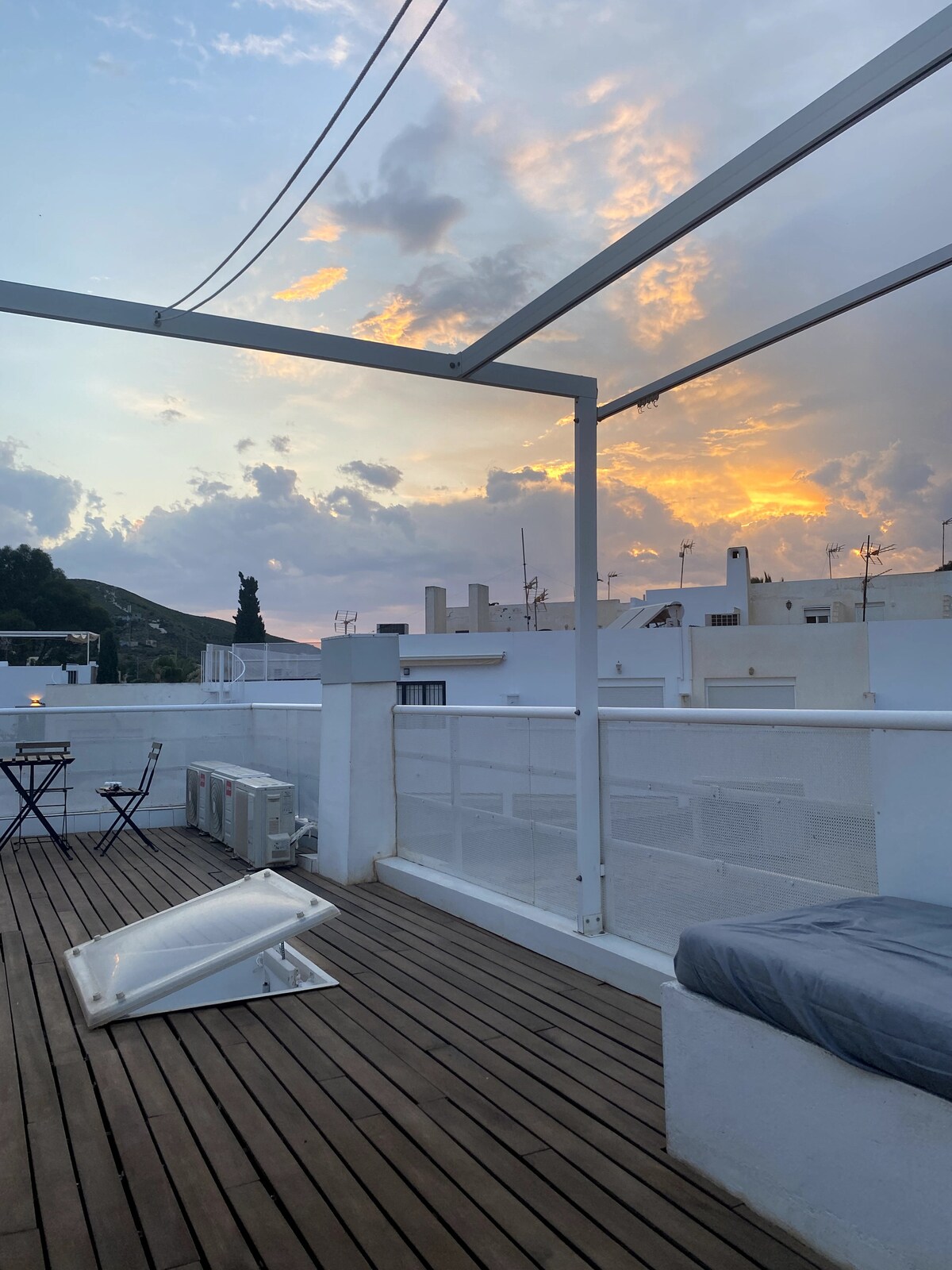 Benvenuti nel nostro incantevole duplex con terrazza ad Agua Amarga a 250 metri dalla spiaggia! Il nostro accogliente alloggio può ospitare fino a 4 persone, con una camera da letto principale con letto matrimoniale, una camera con due letti singoli e tutti i materassi nuovi. Inoltre, dispone di un'ampia terrazza con tenda da sole, un grande tavolo e punti luce, perfetta per rilassarsi all'aperto, cenare e godersi il panorama senza uscire di casa.