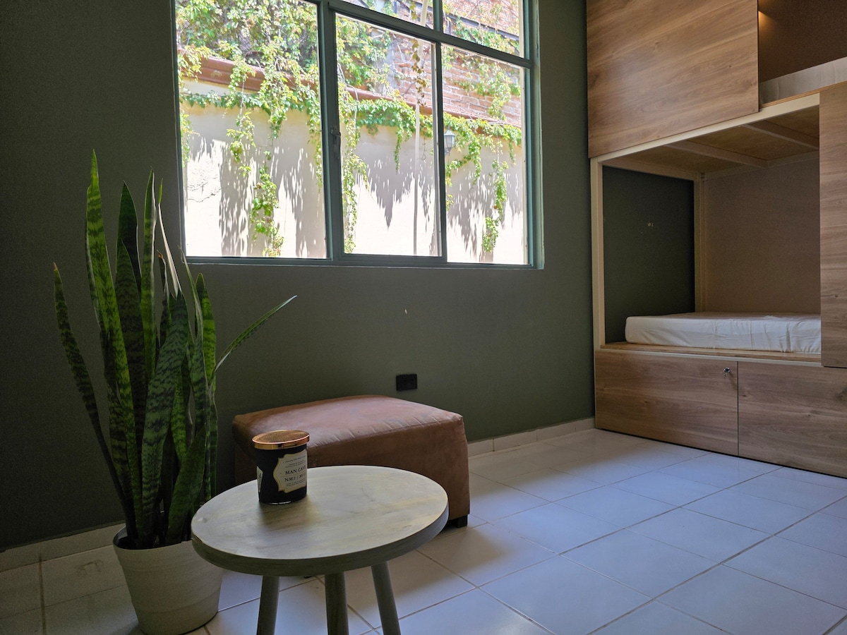 Precio para 2 Perosnas. Estamos a 1 km de la FNSM, puedes llegar caminando en 10 min o menos de 5 minutos en auto. La estancia es en habitación compartida con 8 camas, ideal para viajar ligero y hacer amigos • 2 baños completos • Cocineta • A/C • Área de trabajo • Desayuno Continental ligero incluído Es un lugar para descansar, moverte fácil por la ciudad y tener lo necesario sin complicaciones. Si vienes a disfrutar la feria o explorar Aguascalientes, aquí tienes una opción cómoda y ubicada.