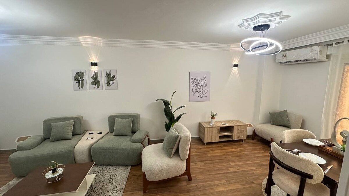 Proprio sul lungofiume del Nilo, l'appartamento offre una vista incredibile sul fiume. L'appartamento è pensato per le vacanze con la famiglia e gli amici, con un'atmosfera simile a quella di un hotel; inoltre, è arredato in modo lussuoso per offrire agli ospiti un'esperienza confortevole durante il soggiorno. L'appartamento offre tutti i servizi elettrici richiesti dagli ospiti, con uno schermo da 65 pollici per le serate al cinema. Il wifi illimitato è disponibile in tutto l'appartamento. Servizi di pulizia settimanali per soggiorni prolungati.