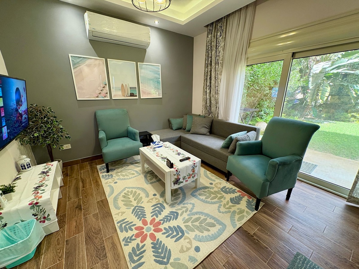 Ti diamo il benvenuto nella tua casa a Sheikh Zayed!✨ Goditi il tuo soggiorno in questo moderno appartamento con 2 camere da letto completamente arredato nel cuore di Sheikh Zayed City. 🌆 5 minuti — al centro commerciale Espana Plaza e al centro commerciale The Gate. 7 minuti — per Arkan Mall e Capital business park. 10 minuti — per Mall of Egypt e Mall of Arabia. 25 minuti — alle Piramidi e a Zamalek. Cosa riceverai: •🛏️ 2 comode camere da letto. •🛋️ Internet ad alta velocità con TV da 65 pollici •🍳 Una cucina completamente attrezzata •🌿 Il tuo giardino privato • ❄️ Aria condizionata