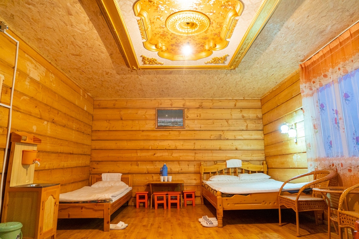 Confortevole casa in legno a 2 piani completamente arredata/attrezzata in cerca del suo inquilino. Situato a 3 minuti a piedi dal lago Huvsgul e a 3 minuti dalla caffetteria New Roots. Porta con te dei vestiti e goditi il tuo soggiorno nella nostra comoda casa calda. Con questo alloggio in centro, la tua famiglia sarà vicina a tutto.