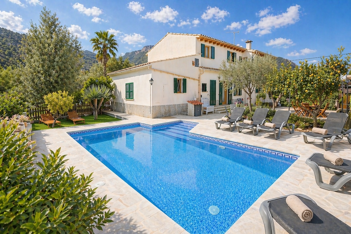 In questo alloggio si respira tranquillità: rilassati con tutta la famiglia! Bella casa di campagna situata a 5 minuti di auto dal centro di Sóller e a 10 minuti da Pto de Sóller in auto, è una casa con vista sulla montagna della Serra de Tramuntana, circondata da aranci, limoni, mandorli e con un orto dove si può godere di tutte le verdure.