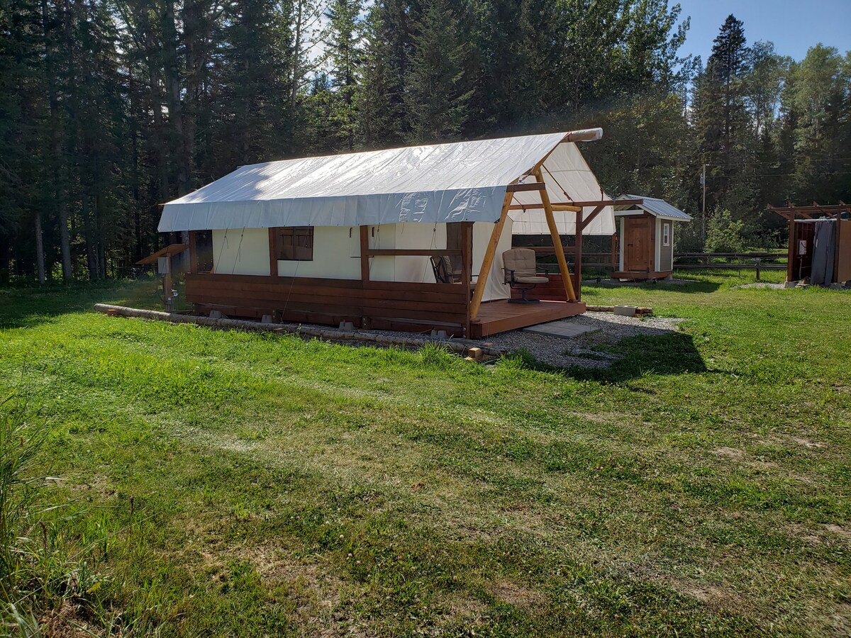 Experience the Ultimate Glamping Getaway in Golden, BC! Wake up to breathtaking panoramic views right from the comfort of your glamping tent! Nestled in the heart of nature, our cozy canvas wall tents provide the perfect balance of outdoor adventure and modern comfort. Hot Shower, Electricity and shared kitchenette with BBQ and cookstove. 12 Min from the town of Golden. 21 min from Kicking Horse Mountain Resort, 10 min from The Golden Sky Bridge & 30 min from Yoho National Park or Glacier NP.