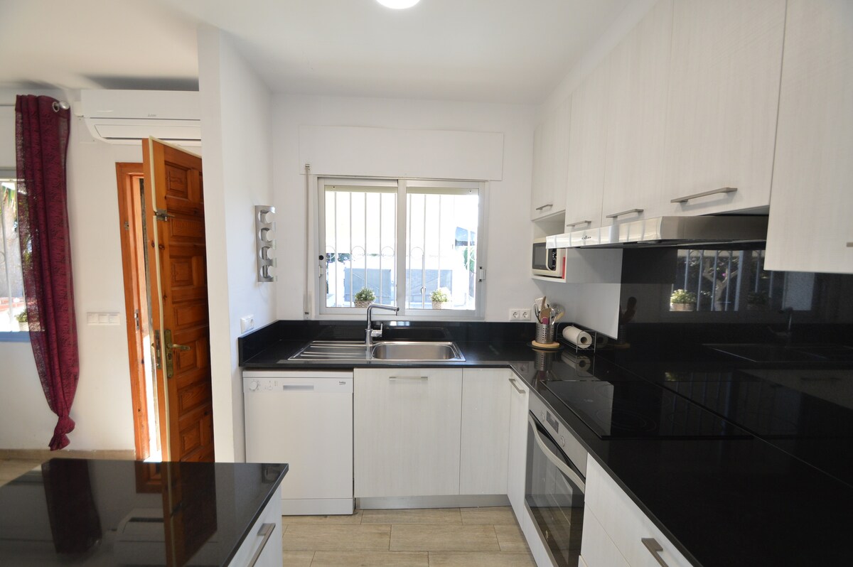 Villa esclusiva e accogliente con piscina privata all'interno e quasi al mare a Sant Carles de la Rapita. 3 camere (letto 1,50 cm, letti 90 cm e letto 110 cm), 1 bagno, cucina, sala da pranzo, garage e barbecue (kit completo di accessori per cucinare squisiti paella e piatti di riso forniti dal proprietario) A/C. Wifi. ANIMALI AMMESSI. NON SONO AMMESSE feste o eventi che possano disturbare la tranquillità dello sviluppo. PISCINA DISPONIBILE FINO AL 15 OTTOBRE.
