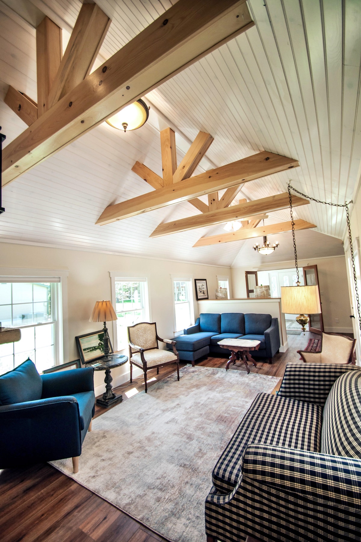 Cottage con tetto spiovente sul lago, lago di Charleston