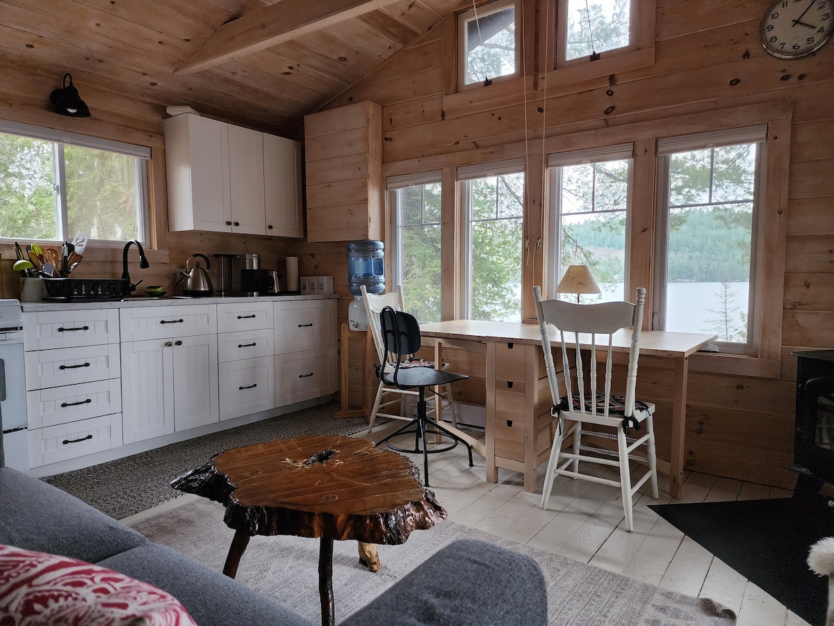 Il Kennedy Cottage è un incantevole chalet canadese in legno, situato sulla tranquilla costa del bellissimo lago South Portage, a Haliburton, in Ontario. Progettato con vetrate a tutta altezza, ti permetterà di ammirare splendide viste e goderti il sole da qualsiasi punto della proprietà. Il nostro camino ti terrà al caldo e ti farà sentire a tuo agio nelle notti più fredde; in alternativa, potrai scegliere di accendere un fuoco all'aperto e rilassarti sotto le stelle. Per chi ha bisogno di lavorare, Bell Fiber Optics renderà tutto più semplice.
