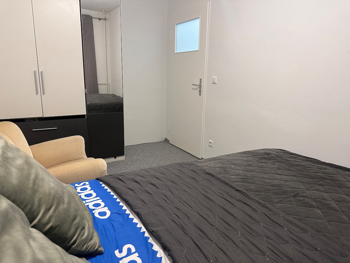 Appartamento accogliente e ben attrezzato con cucina completamente arredata, bagno con vasca e balcone. Situato in una zona tranquilla a pochi minuti da Volkswagen, ideale per viaggiatori d'affari o soggiorni brevi. Nota: il letto è largo 140 cm, come mostrato nelle foto. Tienilo a mente al momento della prenotazione.