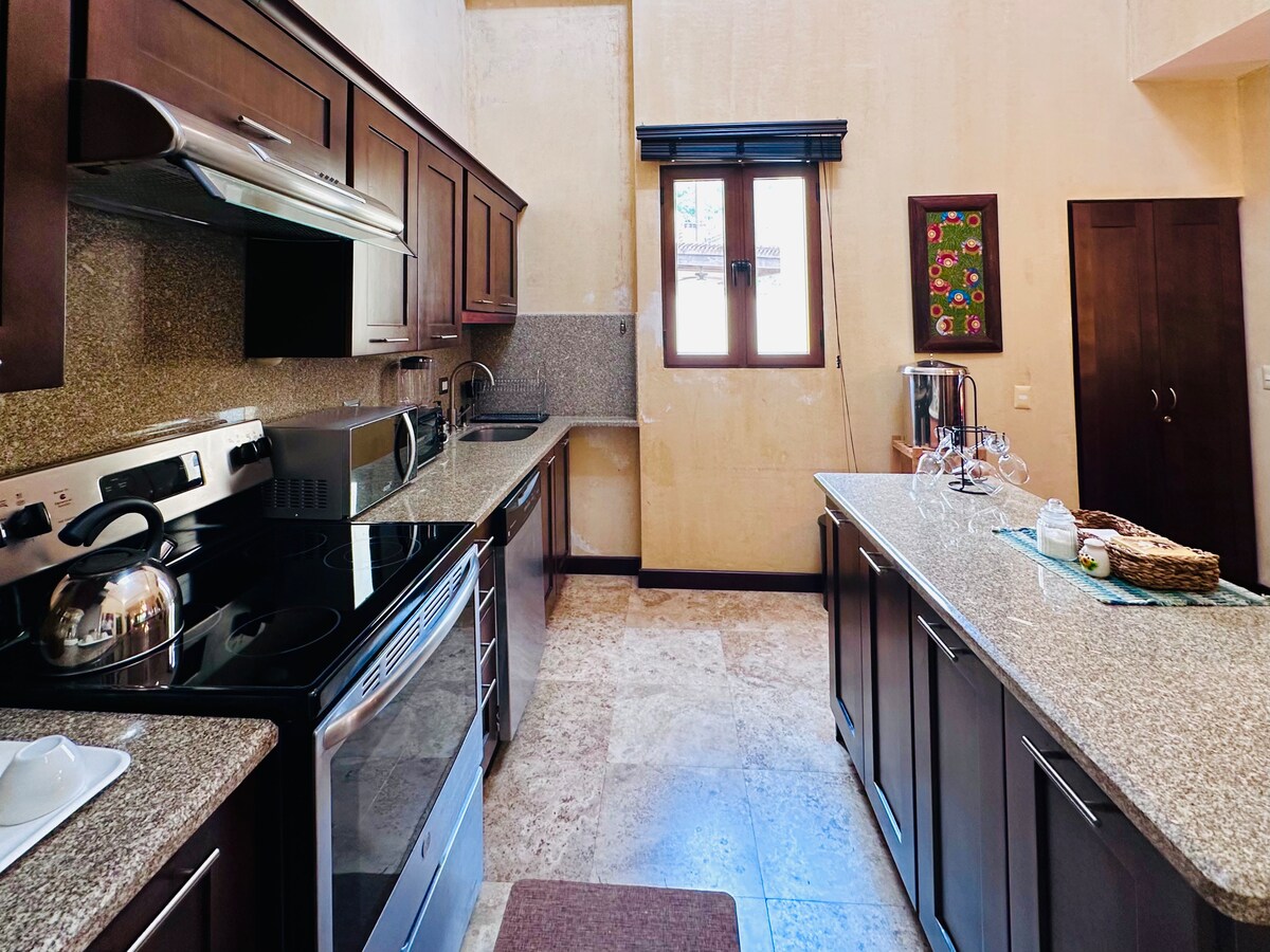 Rifugiati nel nostro splendido chalet immerso vicino ad Antigua, in Guatemala: il rifugio perfetto per famiglie, weekend o lavoro a distanza. La nostra accogliente casita con 2 camere da letto può ospitare comodamente fino a 5 persone, offrendo un rifugio sereno immerso nella natura. Goditi una vista mozzafiato sui maestosi vulcani proprio davanti alla porta di casa. Fai un tuffo nella scintillante piscina, rilassati nella vasca idromassaggio o siediti vicino al focolare sotto le stelle per serate memorabili con i tuoi cari.