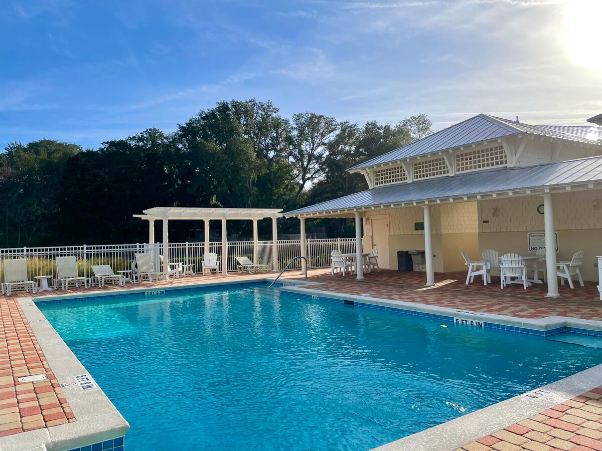 "Incastonata su un tranquillo ettaro e mezzo sotto la chioma di maestose querce vive, questa casa splendidamente ristrutturata è un gioiello nascosto che offre tranquillità e fascino. La piscina a grandezza naturale e schermata offre un'oasi privata, perfetta per una nuotata rinfrescante da maggio a ottobre. Un portico ombreggiato con amaca ti invita a rilassarti e a staccare la spina. Situato alla fine di una strada tranquilla nel cuore dell'isola, questo rifugio tranquillo si trova a solo un miglio dalle spiagge incontaminate e vicino a tutte le principali attrazioni di Amelia Island."