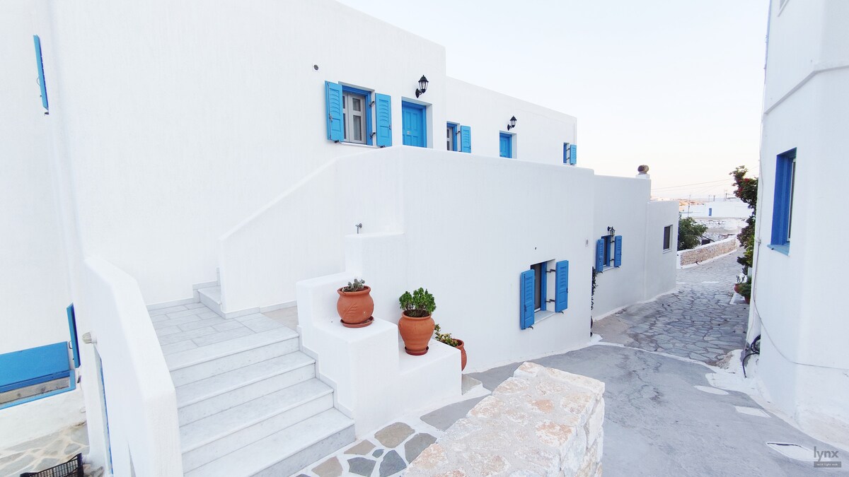 Un'antica casa del 1600 (di proprietà di una coppia italiana) nel cuore del villaggio medievale, indipendente, su due piani, ristrutturata nel 2011 ed arredata con gusto elegante-minimalista. Tranquillità e privacy assolute. Spazi esterni molto godibili, romantico cortiletto privato e terrazza con vista mare incantevole. Esposizione Sud-Ovest, bellissimi tramonti sulla baia di Katapola.