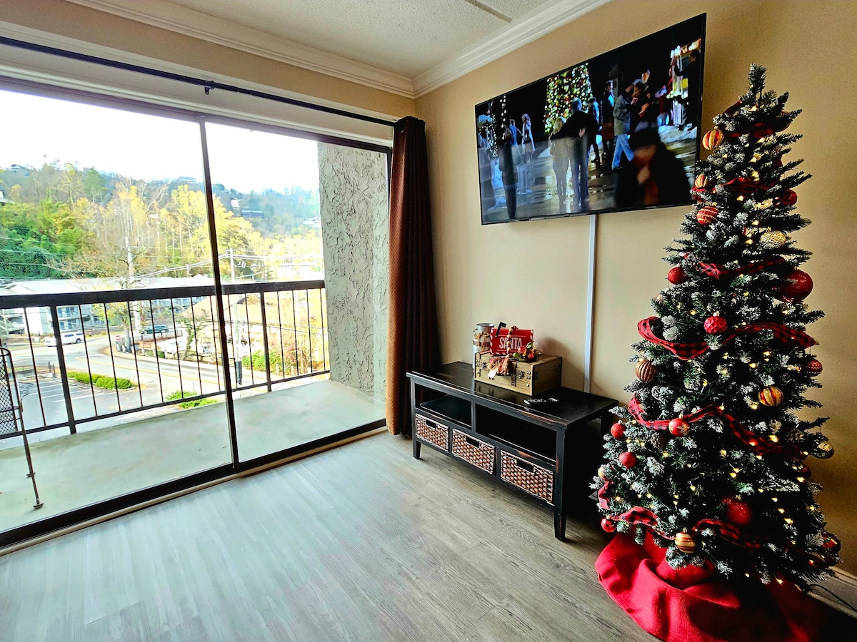 Questo appartamento con 2 camere da letto e 2 bagni è sopra la striscia e dispone di 2 camere da letto matrimoniali grandi, una cucina abitabile completa, un balcone privato con ampia vista su Gatlinburg e lo Smokies e un confortevole soggiorno e zona pranzo. Siamo abbastanza vicini al centro per camminare o fare un breve tragitto in auto. Parcheggiare nella nostra community è gratuito! Goditi il tuo caminetto, internet ad alta velocità e 3 TV via cavo! Goditi la fauna selvatica delle Smoky Mtn, ma mantieni sempre una distanza di sicurezza!