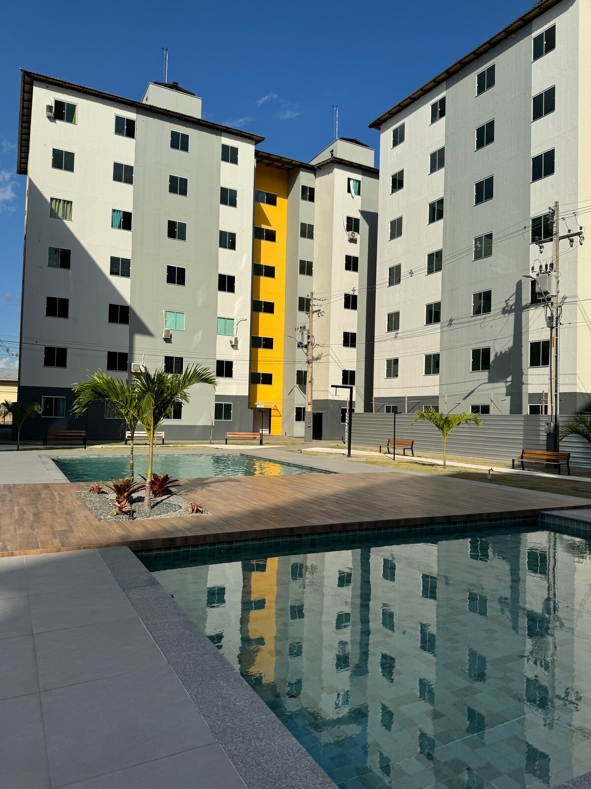 Benvenuti nel nostro grazioso appartamento situato al piano terra, pieno di stile e raffinate finiture! Non c'è bisogno di ascensore o scale. Questo spazio accogliente è completamente attrezzato per rendere il vostro soggiorno memorabile. Godetevi il comfort e la comodità dell'alloggio. Situato in un condominio con vari servizi, come barbecue, piscine, minimarket, lavanderia e fruttivendolo. Può ospitare fino a quattro persone, offrendo un'esperienza accogliente e rilassante.