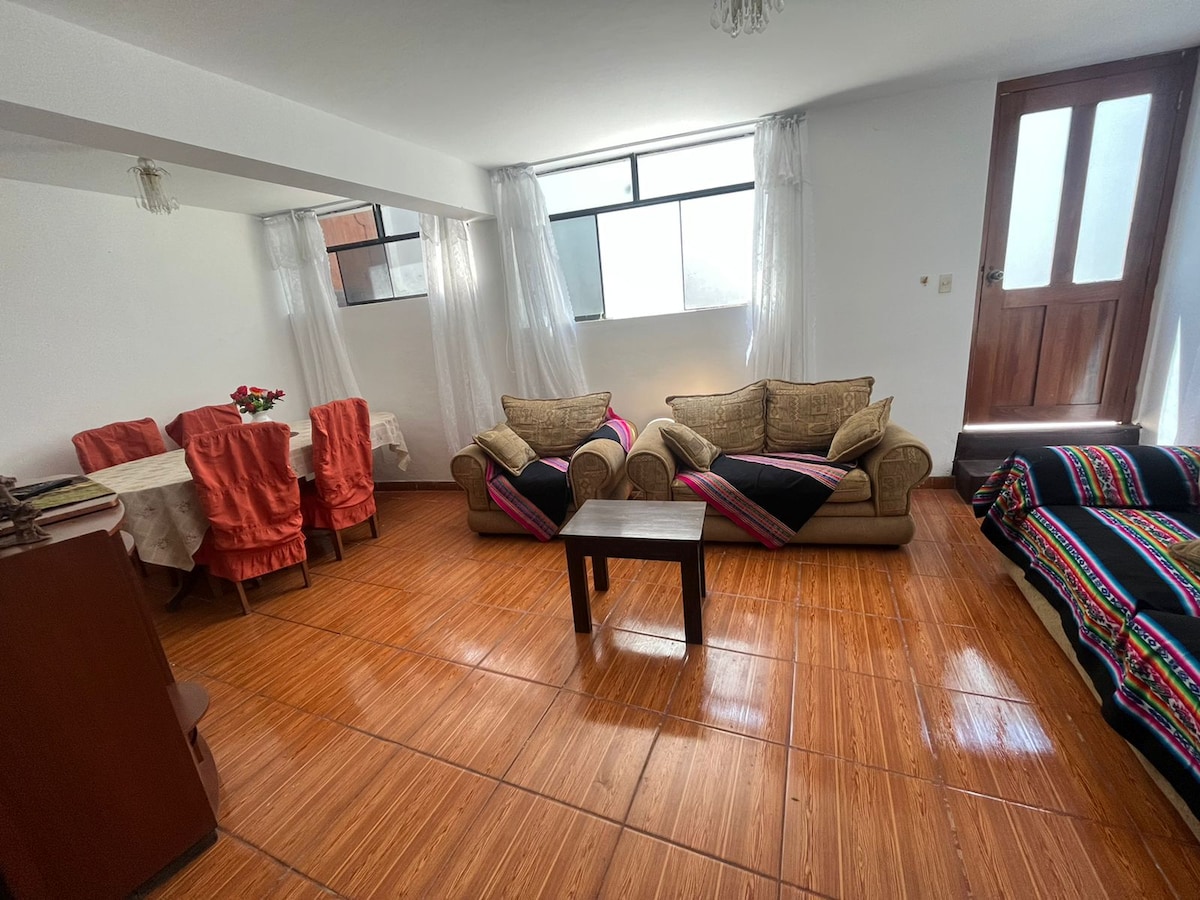 Ti diamo il benvenuto nel nostro bellissimo appartamento ad Andahuaylas! Uno spazio perfetto per godersi una vacanza confortevole e rilassante. Questo appartamento luminoso dispone di: - Camera da letto principale (1 letto matrimoniale a due posti) - Camera secondaria (2 letti de plaza y media) - Bagno moderno - Bright room - Cucina e pasto Situato a soli 5 minuti dalla piazza principale, sarai vicino ai migliori ristoranti della zona e alle attrazioni turistiche.