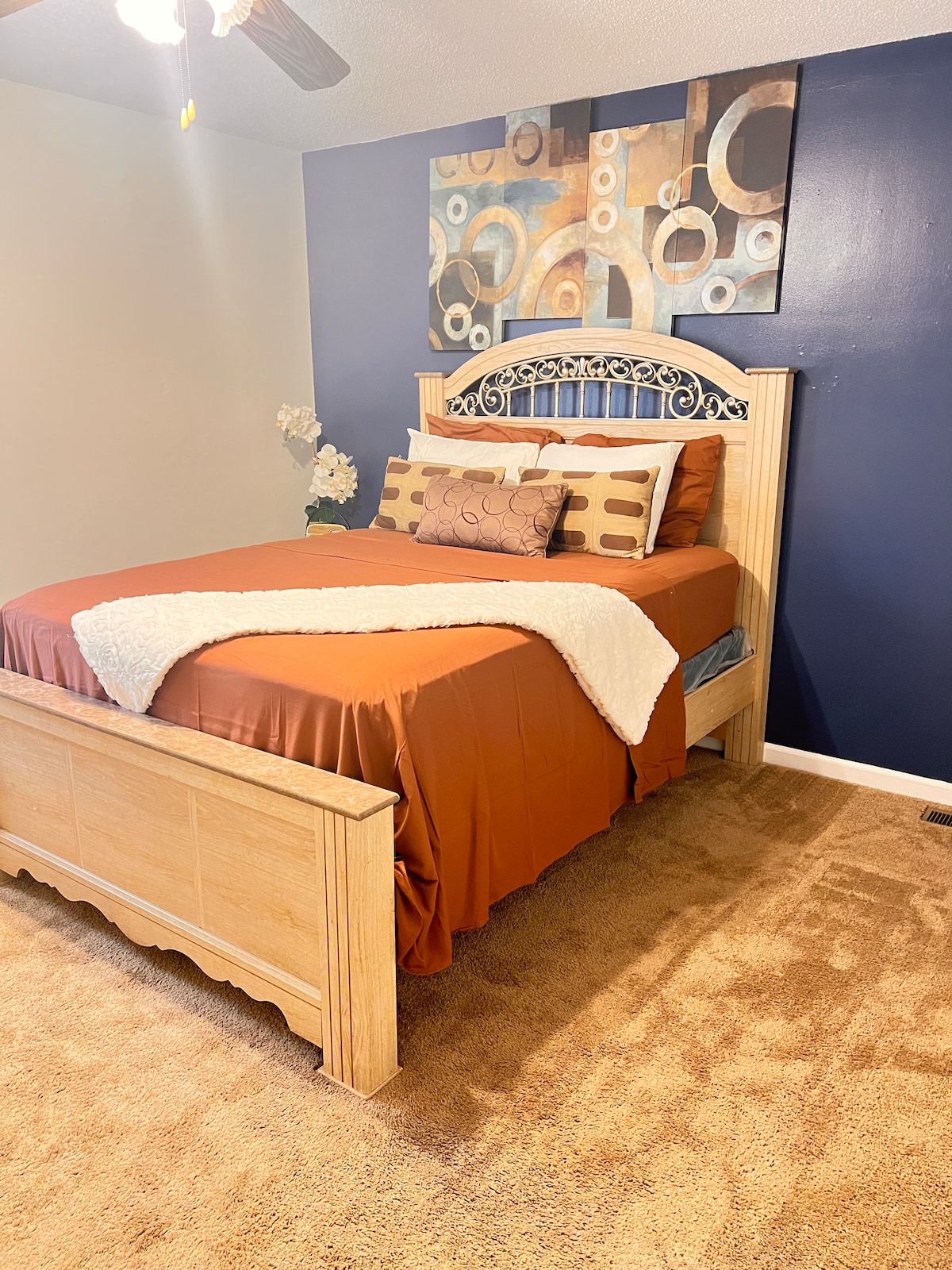 The Bull's Retreat, a newly renovated space with 2 King Beds and 2 single beds, ideal for travelers or getaways. It's centrally located in a peaceful neighborhood near Ft. Bragg, Fayetteville, Sanford & Southern Pines. It's great for reconnecting with familiy and friends. The open-concept living space includes a fully equipped kitchen, breakfast bar, dining area, 3 bedrooms, 2 bathrooms, and open living room. Note: Owners reserve the garage for personal use only; it isn't accessable to guests.