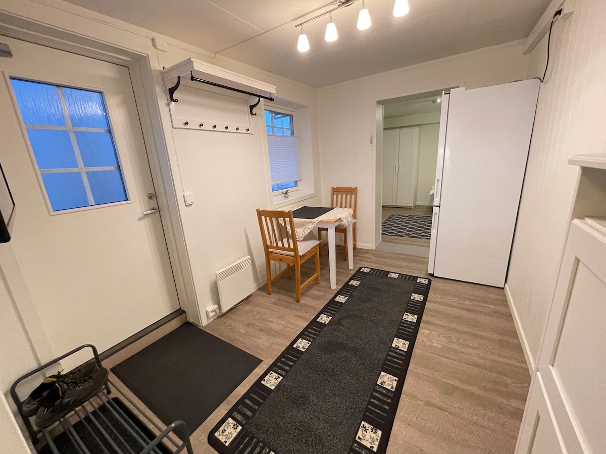 Monolocale al piano interrato! Posizione ideale per vedere l'aurora boreale in inverno. Vicino al centro città, al centro balene e all'aeroporto. Ingresso privato, bagno, cucina semplice, letto (180) NB! Altezza del soffitto di 2 metri! L'appartamento deve essere pulito dall'ospite. La biancheria da letto viene messa e tolta dopo l'uso. Tariffa di 500 NOK per il mancato utilizzo della biancheria da letto. L'assistenza per le pulizie può essere prenotata entro e non oltre il giorno prima della partenza. 500 NOK Il soggiorno del garage è chiuso tra il 1° ottobre e il 1° giugno. Può essere noleggiata su richiesta al di fuori di questo orario. NOK 100 al giorno in più nell'affitto.