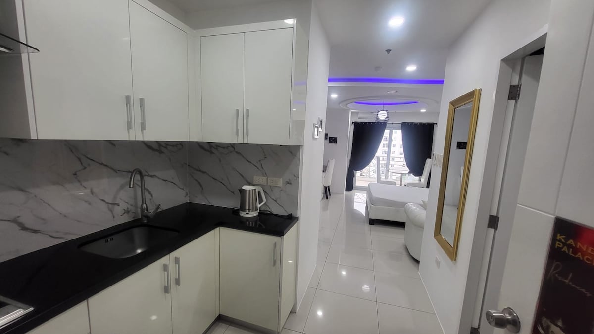 Appartamento appena ristrutturato situato nel cuore della città di Angeles nel complesso Kandi. Il complesso si trova a pochi minuti a piedi da Fields Avenue, SM Clark, a 15 minuti di auto dall'aeroporto di Clark. Con molti servizi all'interno delle aree complesse, come diverse piscine e Jacuzzi, 2 palestre molto ben attrezzate, ristoranti, bar, tavoli da biliardo, minimarket, ecc. Comunità recintata sicura con guardie di sicurezza armate 24 ore su 24. Internet ad alta velocità fino a 500 Mbps. Smart TV con Netflix gratuito e canali internazionali