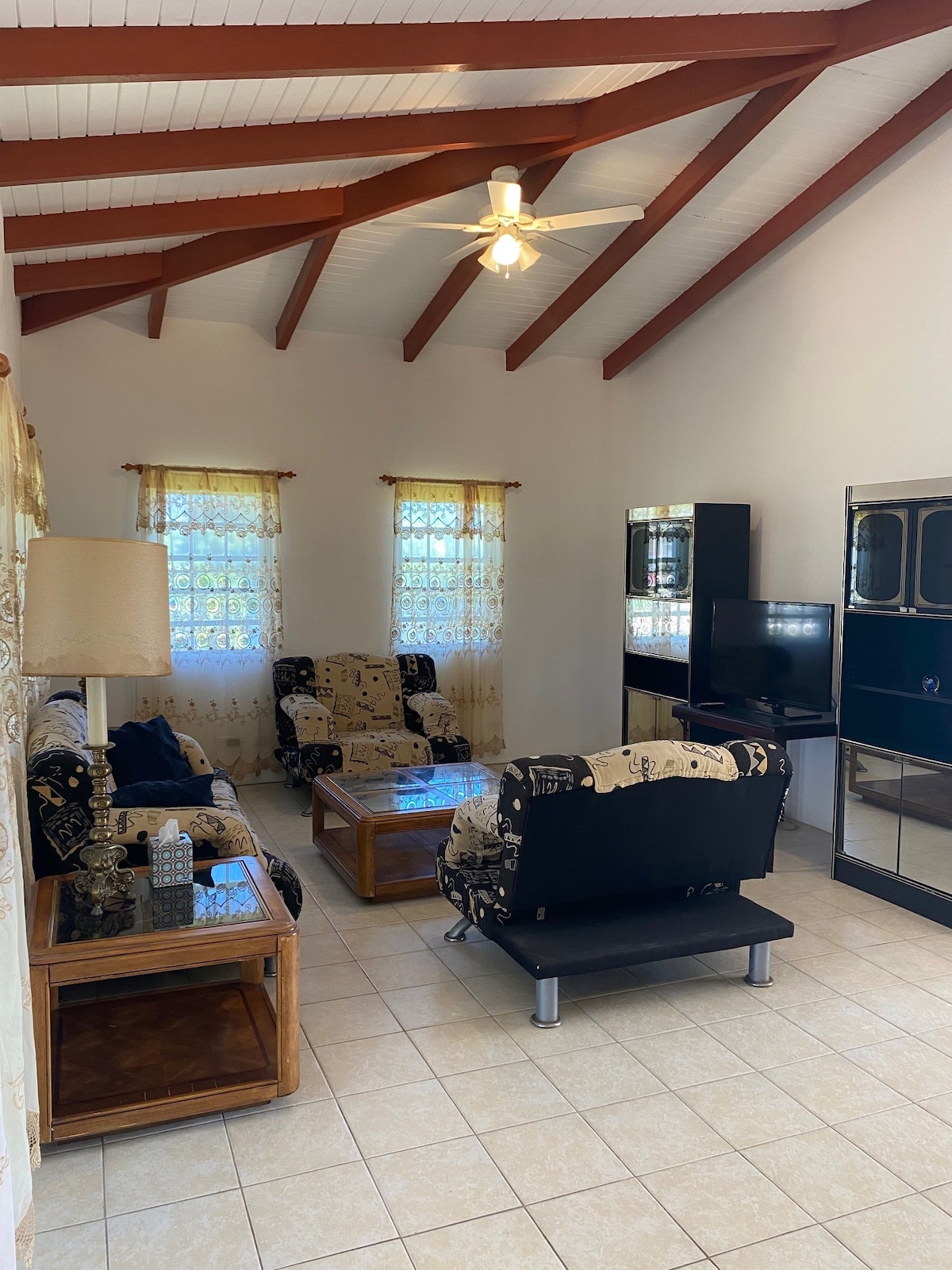 Una bella casa con una camera da letto di recente costruzione in stile moderno. I punti salienti includono spazio completamente climatizzato, letto king size, doppia TV da 55 pollici con canali IPTV completi e servizi di streaming, cancello di sicurezza, telecamere di sicurezza sulla proprietà, cucina completamente attrezzata, lavanderia con lavatrice e asciugatrice e molto altro ancora. La struttura è situata in posizione centrale, ma offre la massima privacy. Non si è badato a spese per offrire un'esperienza unica e di alto livello per il tuo piacere. Non vediamo l'ora di darti il benvenuto!
