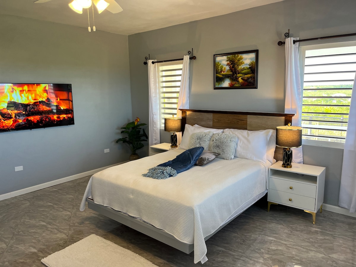 Rilassati e ricaricati in quest'oasi di quiete ed eleganza recentemente ristrutturata. Questa casa molto ordinata di 140 metri quadrati con arredi e finiture moderni, si trova in una zona tranquilla, silenziosa e panoramica di Cedar Village, Northside. Questa dimora è aperta a tutti. A 8-10 minuti in auto dal campus della St. James Medical School. A soli 5 minuti in auto da Crocus Bay. I principali supermercati sono tutti nel raggio di 5 minuti di auto.