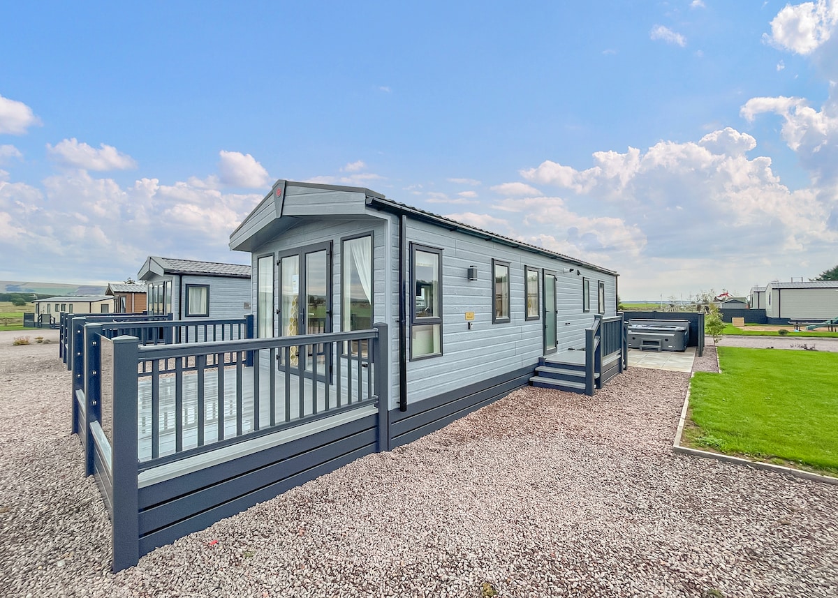 Nuovo per il 2020. Moderno e contemporaneo spazioso lodge in legno, con matrimoniale king-size principale, una matrimoniale e una doppia tutte con TV a schermo piatto.