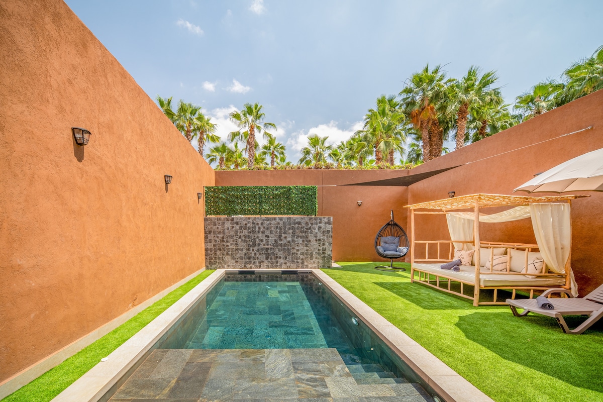🌿 Villa Cordoba – Eleganza Beldi Chic alle porte di Marrakech Scopri Villa Cordoba, un'affascinante villa a schiera in stile beldi chic, immersa in una residenza sicura e familiare, a soli 10 minuti da Gueliz e 5 minuti da Bab Doukkala. Questa villa senza vis-à-vis vi garantisce privacy e serenità. Godetevi la sua piscina riscaldata (senza supplemento dal 1 ottobre al 31 maggio inclusi) e privata, ideale per rilassarsi lontano dagli sguardi, in un ambiente tranquillo e autentico.