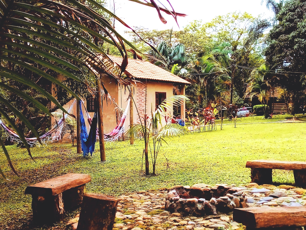 Vicino all'area urbanizzata, l'ecosistema è immerso nella natura con tutta la ricchezza della biodiversità della Foresta Atlantica. Pace dello spirito è ciò che troverete nell'alloggio e anche privacy. Esperienza perfetta per ricaricare le batterie. Le aree di soggiorno sono pulite e confortevoli e la natura è la protagonista principale in questo scenario. Lo spazio Gourmet è il preferito dagli ospiti.