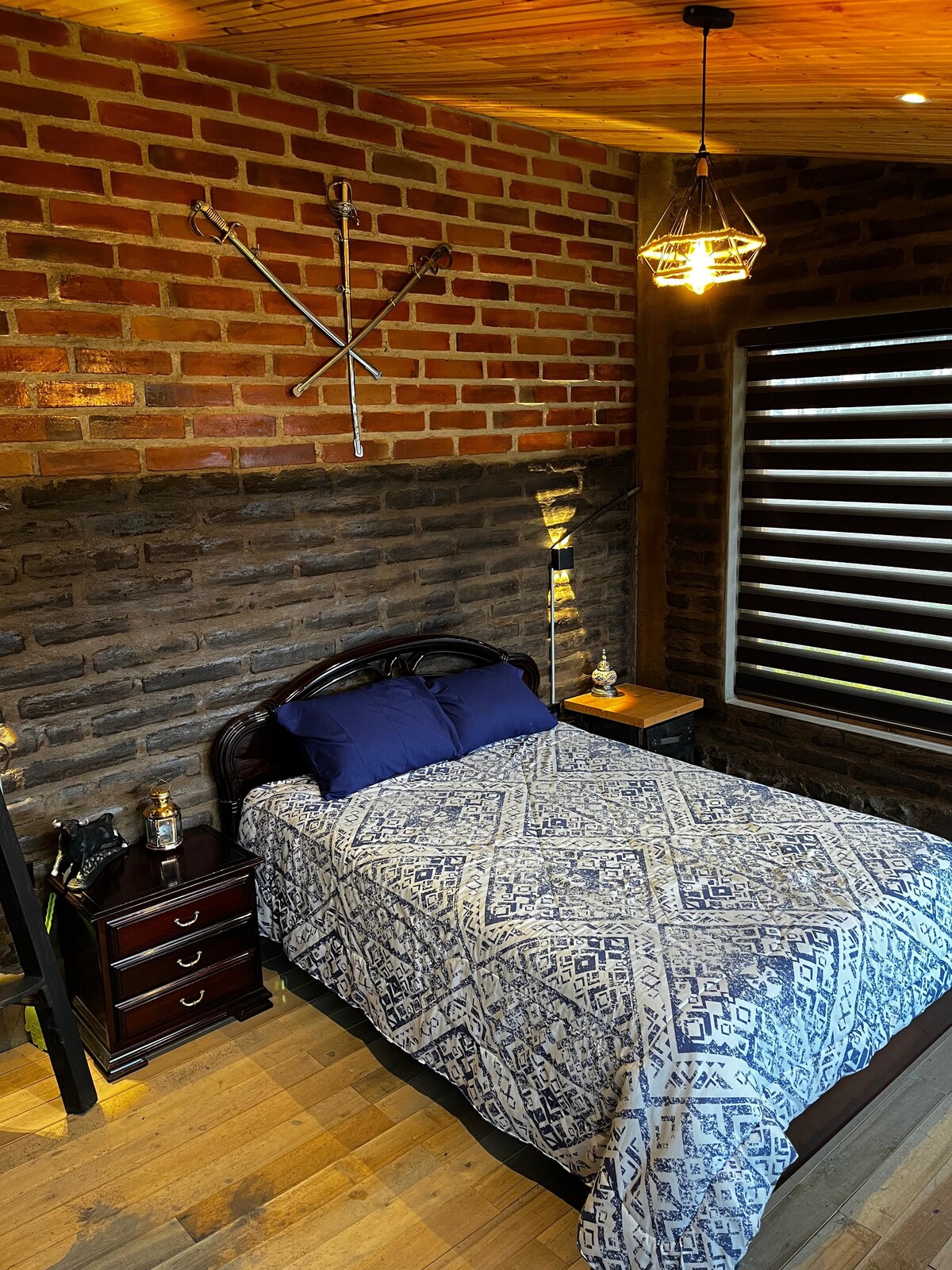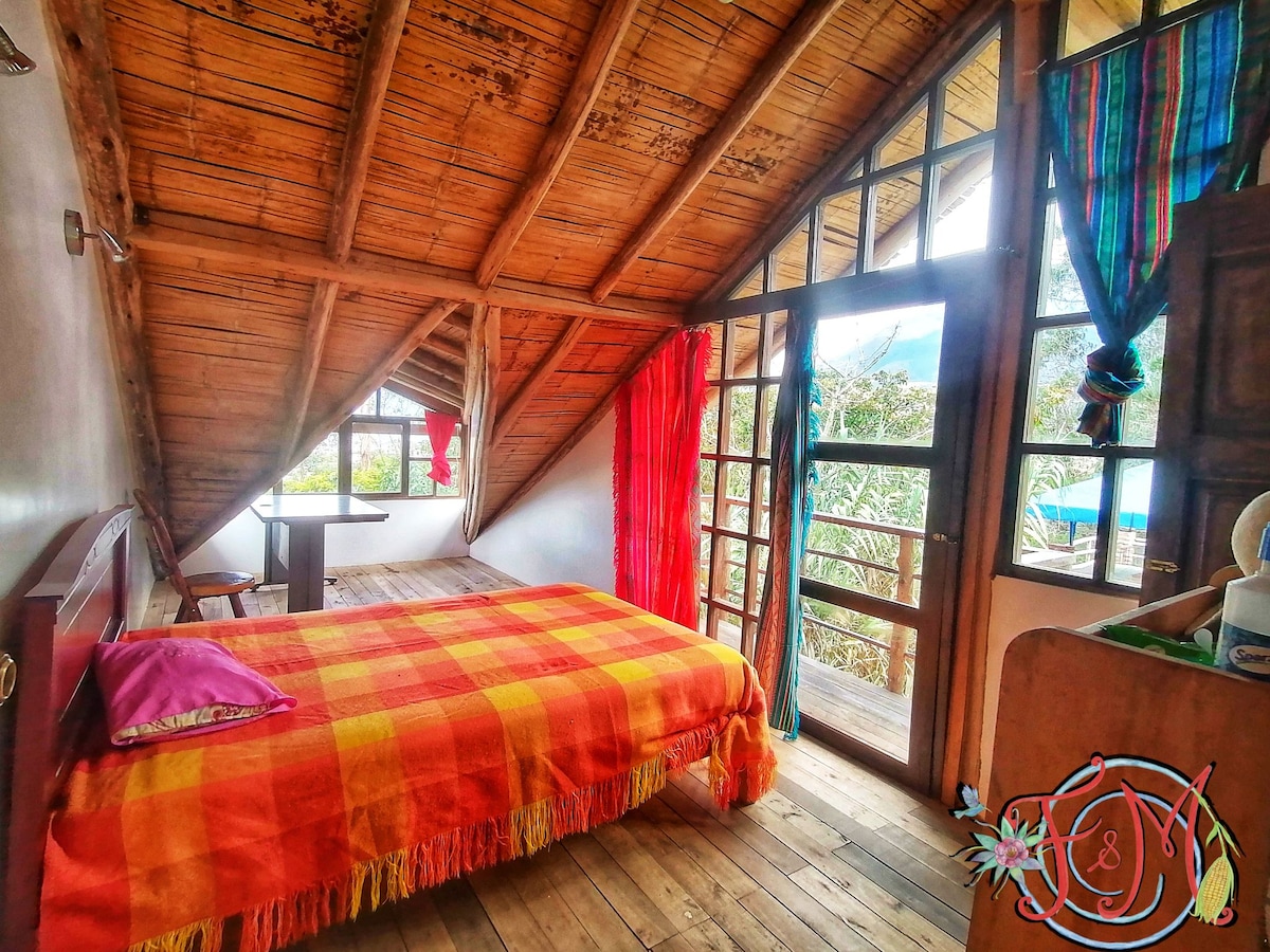 Suite tipo loft, due ambienti con vasca da bagno, soggiorno, cucina e zona colazione, all'interno della suite. (Completamente indipendente) Nelle aree esterne potrai accedere alla nostra piscina e agli ampi giardini. La proprietà è una casa di campagna con una splendida vista sul vulcano Imbabura e Cotacachi. Stacca dallo stress e dal rumore della città in questo luogo magico.