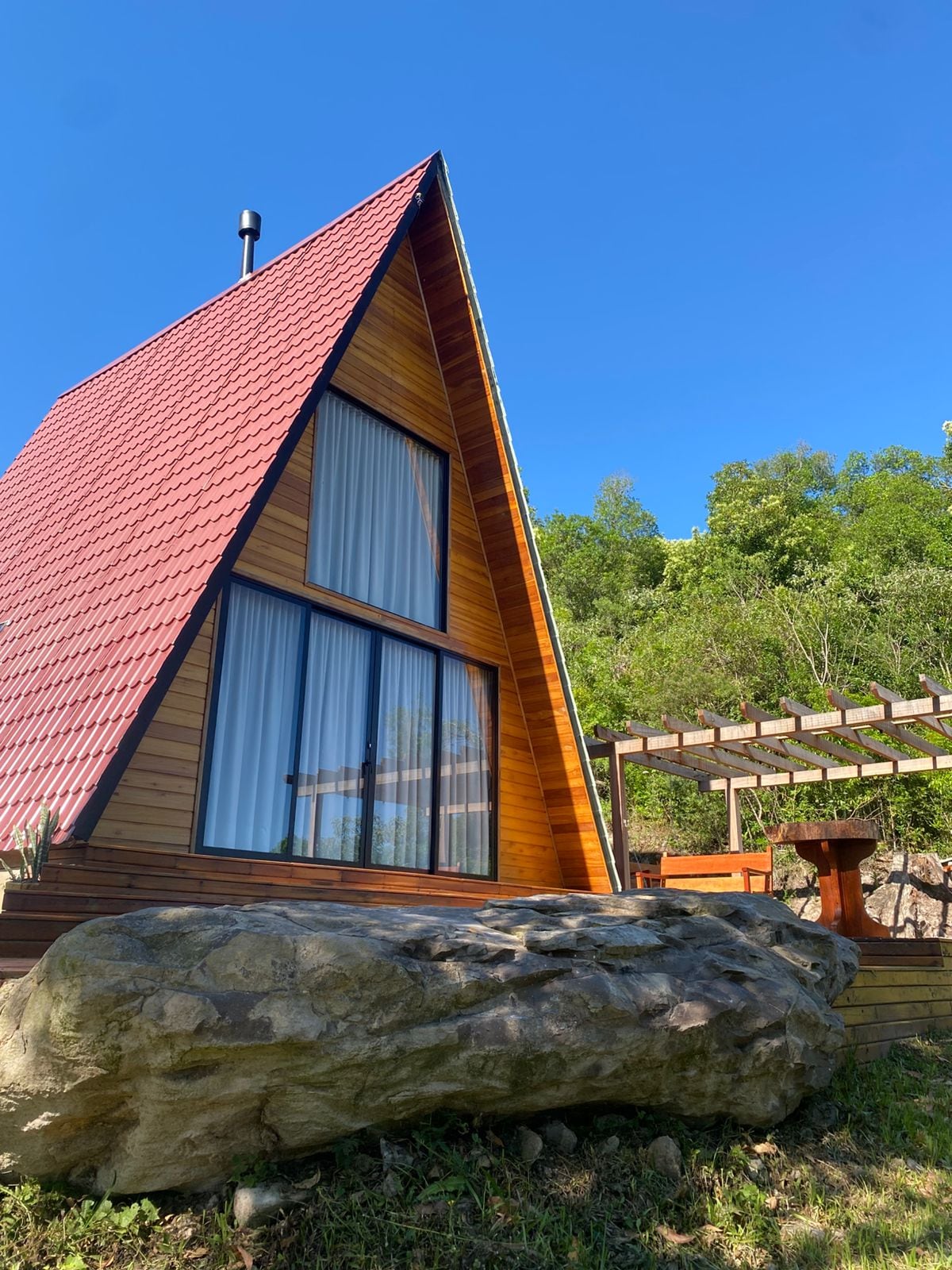 Uma cabana A frame imersa na mata nativa e nos parreirais de uma família de origem italiana. Projetada para acordar com o som dos pássaros e dormir com o barulho da água. O ponto alto fica logo na chegada, o deck fica em cima de uma cachoeira. A cozinha é completa com utensílios de ótima qualidade. O banheiro tem vista para a mata, banheira de imersão e amenities L'Occitane. Todos os cômodos são decorados nos mínimos detalhes. Ideal para relaxar e se colocar no compasso certo da vida.