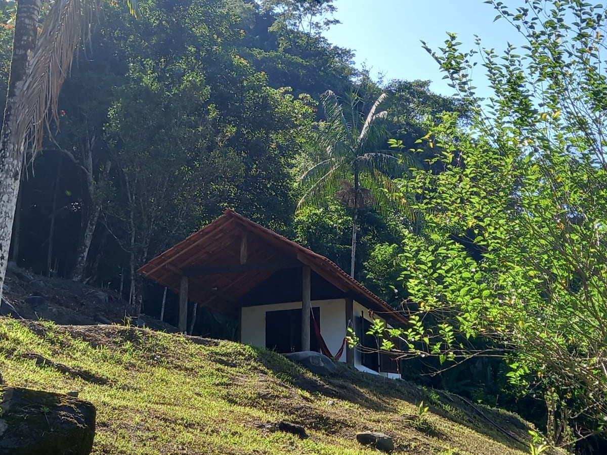 Chalet privato nella Foresta Atlantica, sulle rive del fiume Ribeira a Iporanga, all'interno del Parque Estadual Turístico do Alto Ribeira. Dispone di un letto matrimoniale e uno singolo, bagno con doccia a gas, idromassaggio, mini cucina con piano cottura, minibar, pentole, stoviglie e posate. Ponte con balcone sospeso, mini barbecue e braciere. Uso collettivo: spiaggia privata e sauna riservata agli ospiti. Luogo ideale per riposare e stare a contatto con la natura!