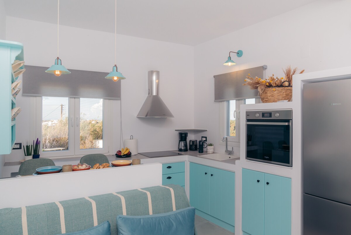 È un cottage in un luogo molto tranquillo e silenzioso sul lato nord-est dell'isola. Hai una vista mozzafiato sul Mar Egeo, che ti dà l'opportunità di rilassarti e riposare mentre sei in vacanza. C'è una camera da letto principale con un letto matrimoniale con un materasso Grecostrom Bodytopia Series e due letti singoli nell'area di riposo che è condivisa con la cucina. È anche una cucina completamente attrezzata e un bagno, che ti darà la possibilità di goderti la vacanza al tuo ritmo.