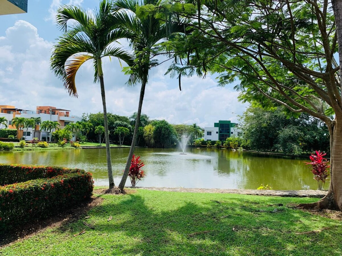 Scappa dalla frenesia della città fino ad Anapoima, un paradiso tropicale a soli 2 ore da Bogotá. Il nostro appartamento è spazioso (83 m ²) ed elegante con una splendida vista panoramica all'interno di un tranquillo ed esclusivo club residenziale con piscina immersa nel verde, laghi e sentieri. Ideale per riposare, andare in vacanza, telelavorare o viaggiare per lavoro. Dispone di un ampio soggiorno e balcone per rilassarsi in comodi mobili e con un televisore da 50 ”. Dispone di un parcheggio.
