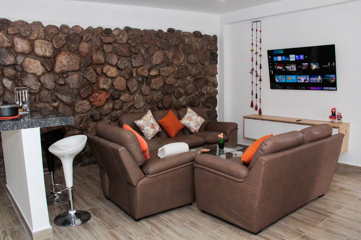 Goditi questo bellissimo appartamento privato situato nel cuore della valle sacra, Urubamba. Dispone di tutti i servizi, 3 camere da letto con bagno privato, balconi privati, salotto, sala da pranzo, cucina attrezzata, wifi, tv via cavo, docce a gas caldo, e con area verde condivisa, zona focolare, zona barbecue per godersi l'aria fresca e la natura della valle sacra.