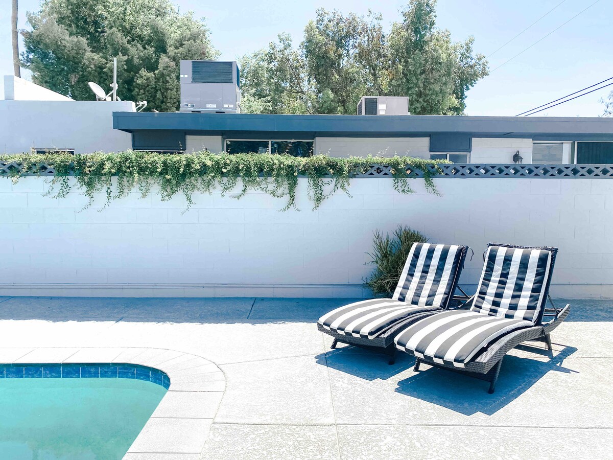 Moderno appartamento di metà secolo che offre il perfetto equilibrio tra lussuoso comfort moderno e fascino storico di metà secolo! Posizione centrale in una delle zone più desiderabili di Phoenix. A pochi minuti dall'aeroporto di Phoenix Sky Harbor e dai migliori eventi e luoghi di svago della valle. A pochi passi da diversi ristoranti famosi sulla 40th e Campbell. A pochi minuti dai Camelback e Biltmore Corridors, dal centro di Phoenix e dal centro storico di Scottsdale, pur offrendo una posizione tranquilla e lussureggiante nel quartiere di Arcadia! Licenza n. 21487473.
