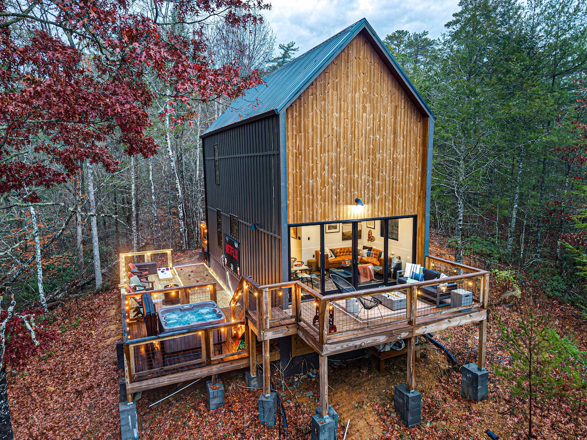 Luxury Private Chalet! 2mi to dtwn/king bed/hottub