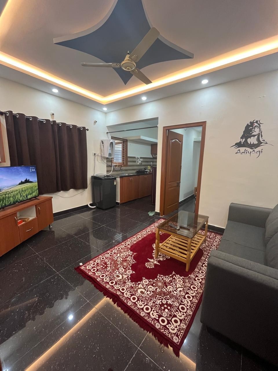 Home away from home at BTM 4th Stage.The house has one bedroom, a living room with sofa cum bed, along with a well equipped kitchen and 2 bathrooms. The bedrooms with wardrobes. The kitchen is equipped with gas stove, a kettle, a mixer and the basic induction cookware. Please note that the elevator doesn’t have a power backup and won’t operate during a power outage. Power cuts are rare in this area, but occasional maintenance shutdowns by the Electricity Department may occur once in 6–12 months