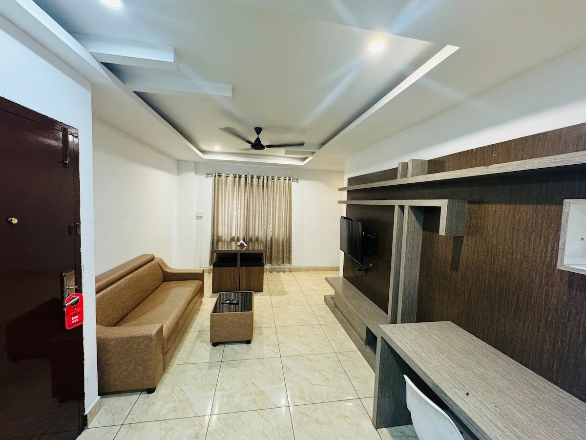 Triente Suites, Appartamento Premium Hotel a Kalyan Nagar, Bangalore. È disponibile una camera da letto in un appartamento di 2 bhk . Triente Suites è un spazioso condominio situato a Kalyan Nagar, a 33 km dall'aeroporto internazionale di Bangalore e a 17 km da Bangalore City Junction. Ogni appartamento dispone di 2 camere da letto, una zona soggiorno, una sala da pranzo e una cucina. Disponiamo di 8 appartamenti con una scelta di letti king-size, queen-size o due letti singoli e possono ospitare 32 ospiti. wifi gratuito e parcheggio privato per gli ospiti.
