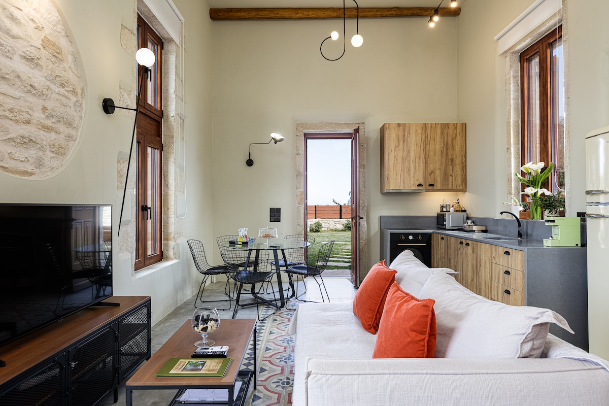 Villa Angelo è un rifugio in pietra ricco di sentimento nel tranquillo villaggio di Kato Poros, parte della Muses Premium Collection. Con 4 camere da letto con bagno, piscina privata e cortile, zona pranzo ombreggiata, barbecue e design senza tempo, offre uno stile di vita lento e radicato. Ristrutturata su fondamenta di 150 anni fa, con un arco in pietra intagliata e interni rilassanti, è perfetta per chi cerca privacy, natura e significato, a soli 15 minuti da Episkopi Beach.
