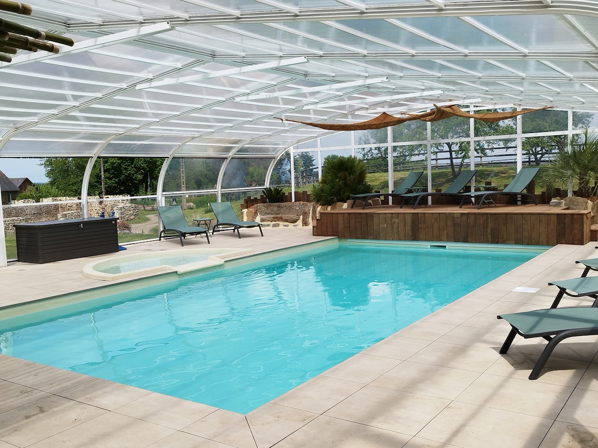 PISCINA COPERTA Ambiente tranquillo e piacevole in mezzo ai cavalli Forse incontrerai il nostro cane che ama le coccole 6 alloggi compongono la nostra proprietà. Ogni abitazione ha la sua indipendenza e il suo spazio esterno. PISCINA aperta da maggio a settembre, comune per tutti i cottage. AREA GIOCHI ideale per i bambini. Biancheria non fornita o a pagamento di 10 euro per letto e 5 euro a persona per gli asciugamani.